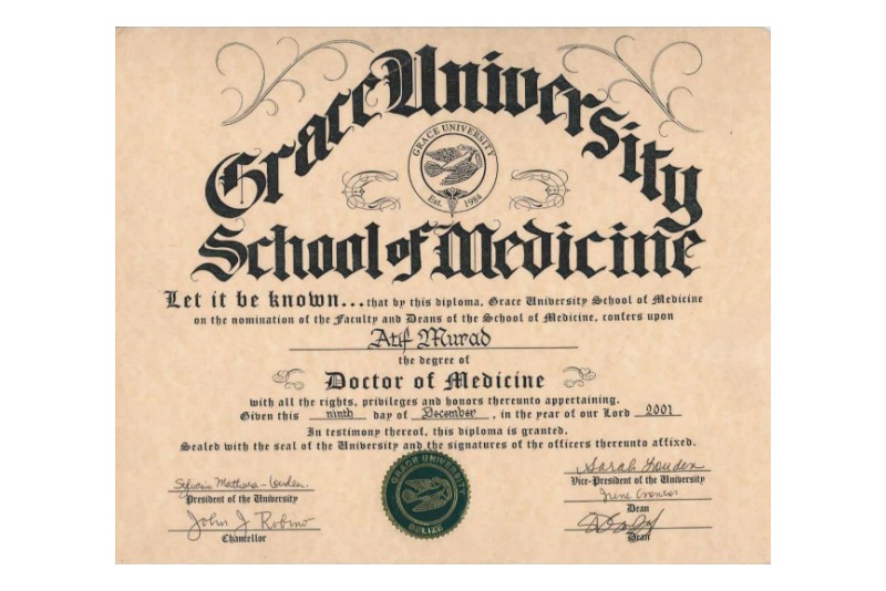 Dr. Atif completed his Bachelor’s with Honors, in Biology, and Allied Health from the prestigious Winona State University, Minnesota, USA., and then completed his M.D. from the American University of Caribbean, and Grace University.
